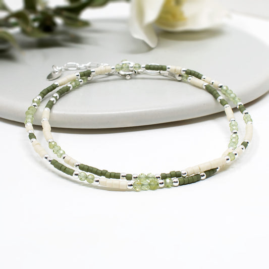 Peridot and Sterling Silver Layered Wrap Beaded Bracelet