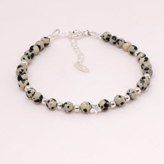 Dalmation Jasper & Sterling Silver Bead Bracelet
