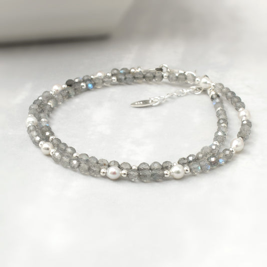 Labradorite & Pearl Double Wrap Bracelet