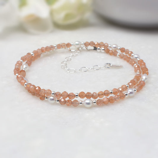 Sunstone & Pearl Double Wrap Bracelet