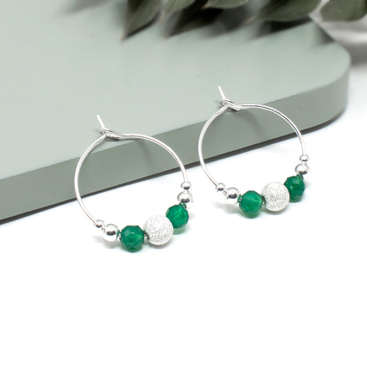 LULU GREEN ONYX HOOP EARRINGS