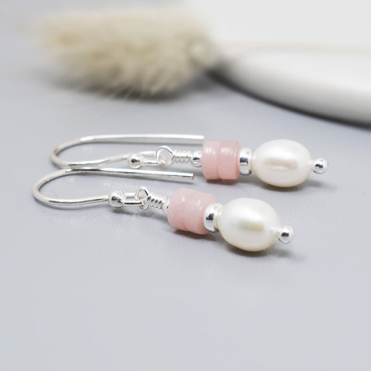 Pink Opal & Freshwater Pearl Drop Earrings