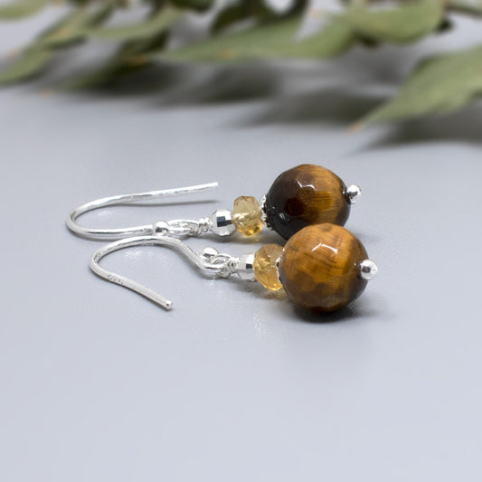 Tiger's Eye & Citrine Drop Earrings