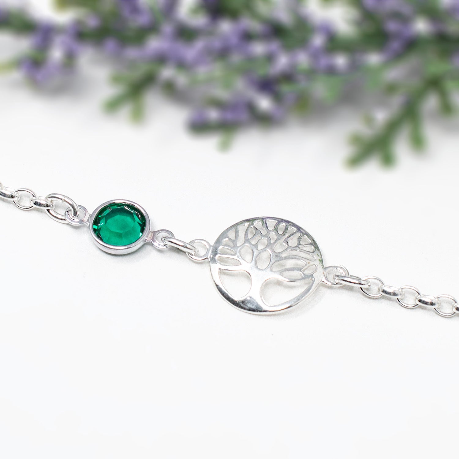 Sterling silver Tree of Life Bracelet with crystal birthstone - a perfect personalised gift for mum, grandma, friends or family members