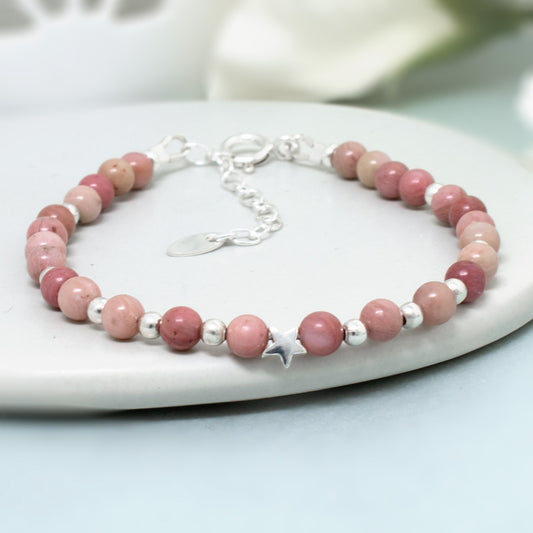 Rhodonite & Sterling Silver Bead Bracelet